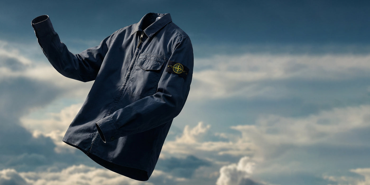 Stone Island Stretch Organic Cotton Satin Overshirt in Navy
