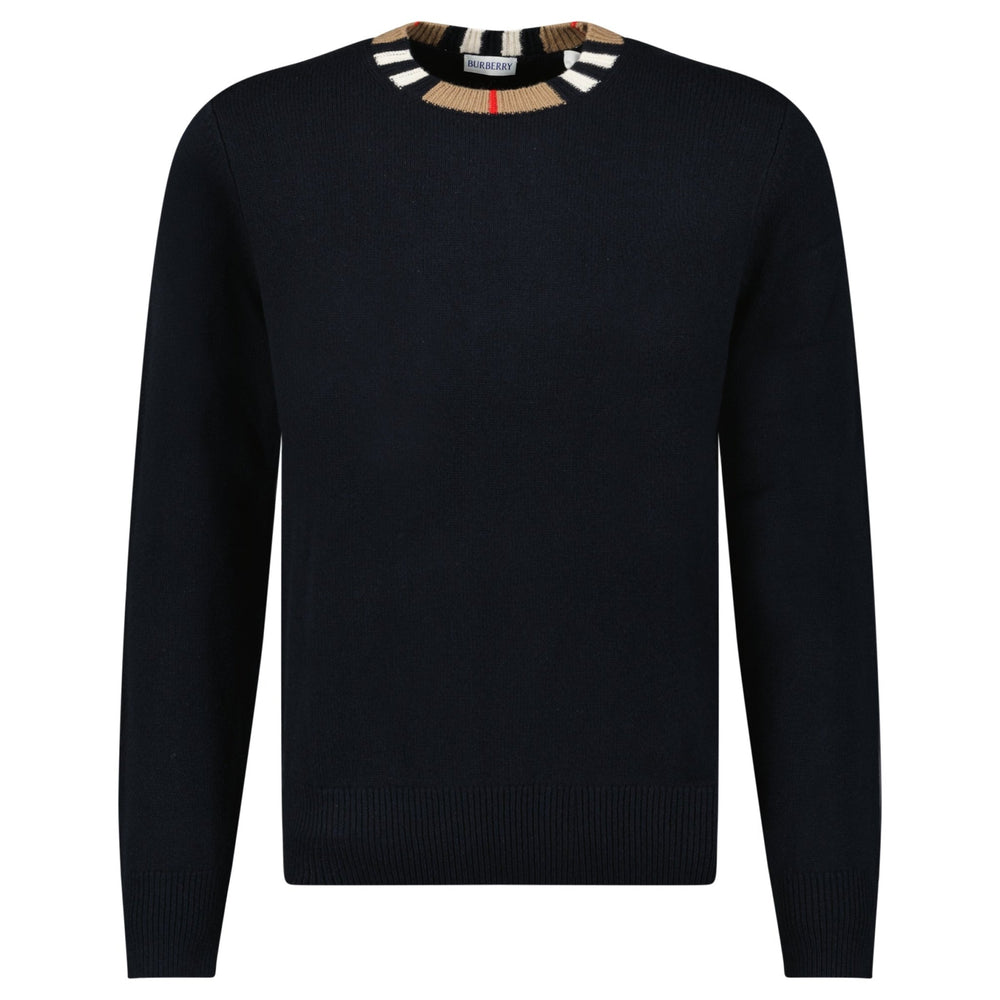 The Burberry ‘Noland’ Knitted Jumper in Black offers a refined take on a wardrobe essential. Crafted from a luxurious blend of 90% wool and 10% cashmere, it delivers softness, warmth, and a lightweight feel. Featuring a classic round neck with ribbed trims, the standout detail lies in the checked neckline, adding subtle brand identity to an otherwise minimal silhouette. Finished with a straight hem, this knitwear piece balances timeless design with Burberry’s signature heritage.