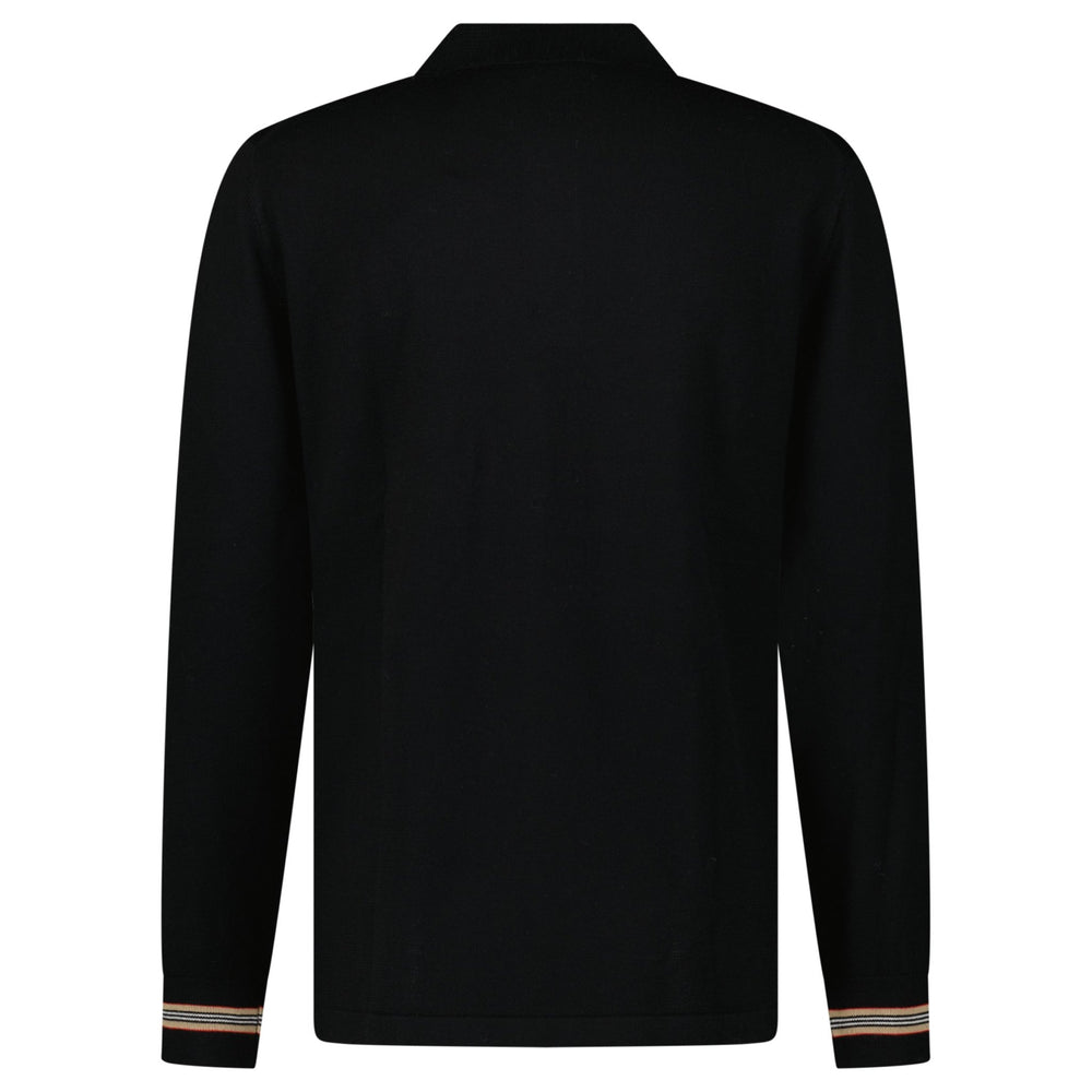 The Burberry ‘Pace’ Signature Stripe Wool Polo in Black delivers timeless sophistication with a modern twist. Expertly crafted from soft, lightweight wool, this long-sleeve polo features a classic collar and a three-button placket adorned with the brand’s signature stripe trim for subtle distinction. Ribbed cuffs with matching stripe detailing add a refined finishing touch, making it an elevated choice for both smart and casual occasions.
