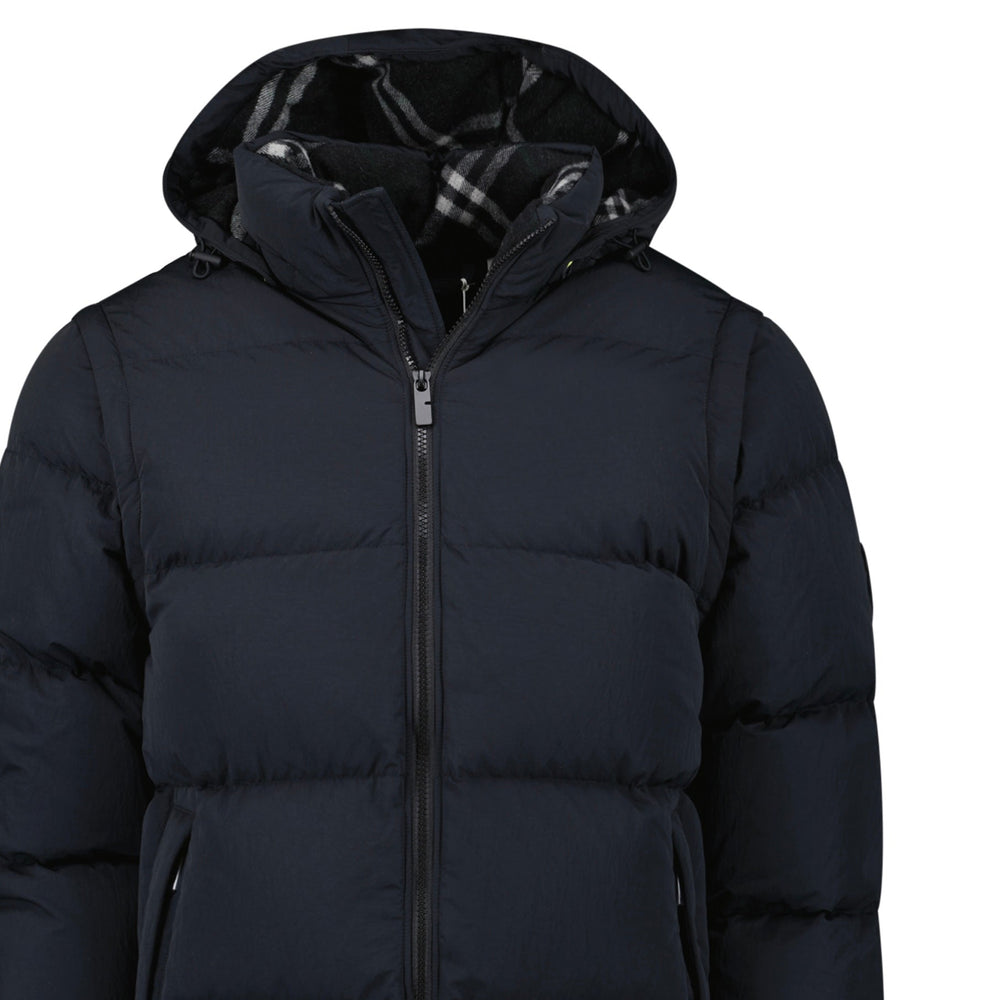 The Burberry Nylon Puffer Coat in Black offers versatile outerwear that adapts to your needs. Constructed from durable polyamide with a quilted padded finish, it delivers both warmth and comfort during colder months. The fixed hood and dual press stud and zip closure provide reliable protection, while multiple pockets add functional storage. Designed with detachable sleeves that transform the jacket into a gilet, it brings two styling options in one piece. Completed with the signature Burberry b-shield patch at the sleeve, this coat combines modern practicality with heritage detailing.