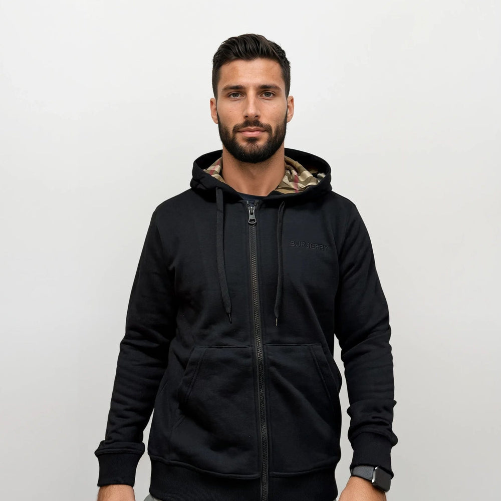 Burberry 'Hove' check Hood Embroidery Logo Hoodie Zip Sweatshirt Black