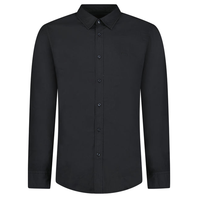 Elevate your wardrobe with the BOSS Relegant Shirt in Black. Crafted from premium cotton poplin, this versatile long sleeve shirt offers a crisp feel and refined comfort, making it perfect for smart-casual dressing and everyday wear. Featuring understated logo embroidery at the chest, this shirt combines classic tailoring with a clean, modern finish. Ideal for pairing with jeans or tailored trousers, this piece brings a polished edge to any outfit.
