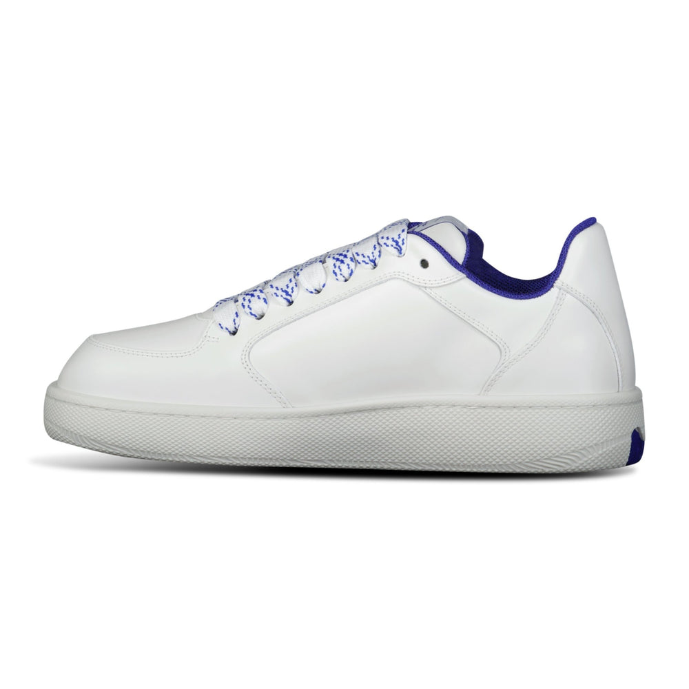 The Burberry Stock Leather Sneakers in White combine timeless design with premium craftsmanship. Made in Italy, these low-top trainers feature a smooth calf leather upper with tonal polyester detailing for a clean, contemporary finish. The durable TPU sole ensures comfort and traction, while subtle Burberry branding delivers understated luxury. Perfect for pairing with jeans, chinos, or tailored joggers, these sneakers bring refined versatility to your everyday wardrobe.