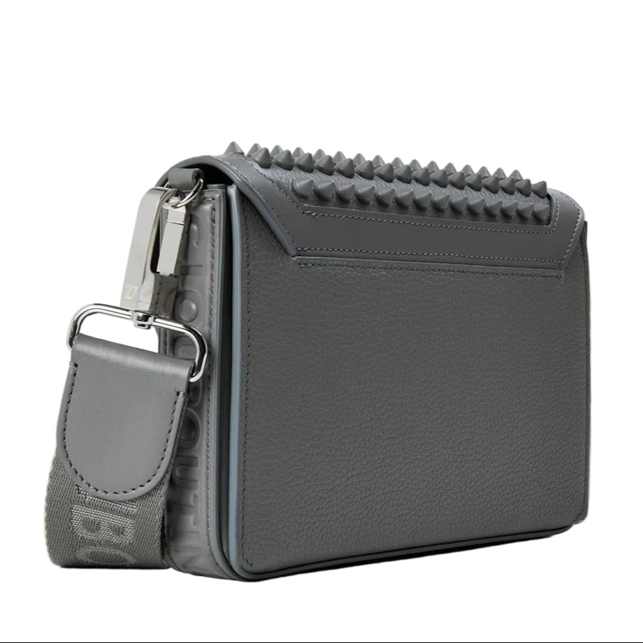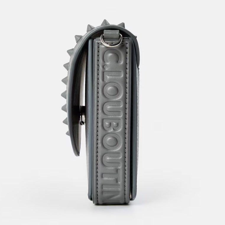 Elevate your wardrobe with the Christian Louboutin Explorafunk Wallet on Chain in Smoke Grey. Expertly crafted in Italy from premium calf leather and rubber, this urban-inspired piece is adorned with the Maison’s signature tone-on-tone spikes for a bold yet refined finish. Designed with an adjustable, removable strap, it offers versatile styling as a shoulder bag, crossbody, or handheld accessory. With multiple compartments and card slots, it combines sleek design with everyday practicality, making it perfect for both day and evening wear.