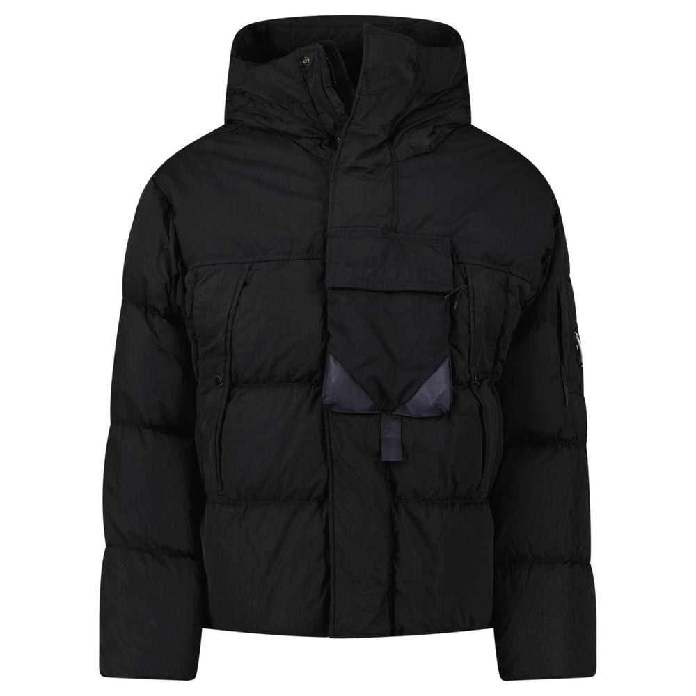 CP Company Eco-Chrome R Mixed Hooded Down Jacket in Black