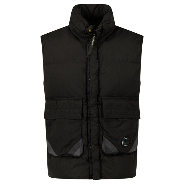 CP Company Lens Garment Dyed ECO-Chrome R Gilet in Black