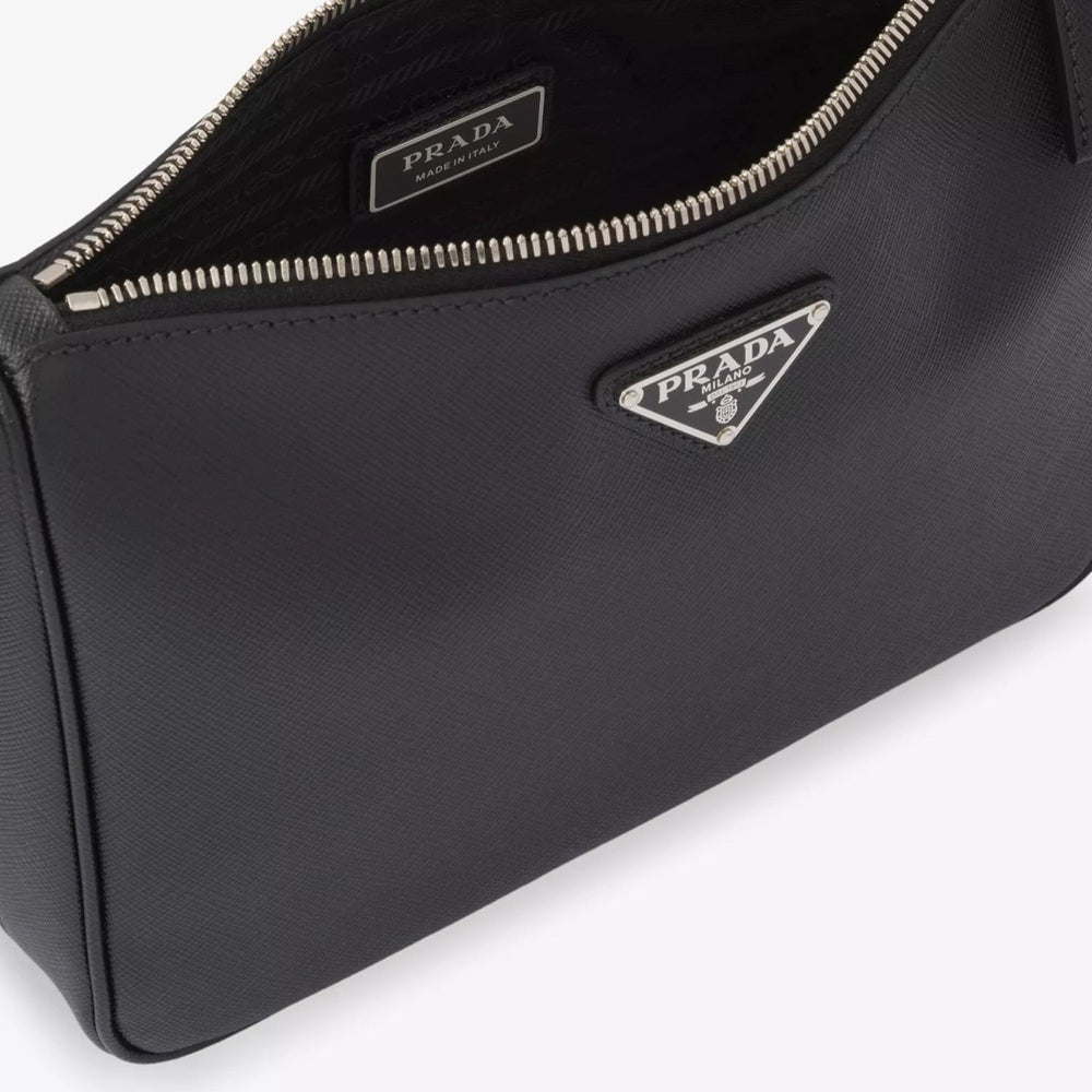 The Prada Saffiano-Leather Shoulder Bag in Black showcases the Italian House’s signature craftsmanship with a modern edge. Designed in a sleek rectangular silhouette, it’s detailed with the iconic enamelled triangle logo plaque at the front. Made from 100% Saffiano leather with a Re-Nylon lining, this bag offers both durability and luxury. A zip closure secures the main compartment, while a detachable mini pouch and adjustable strap add practical versatility. Compact yet functional, it’s an everyday piece that balances refinement and utility.