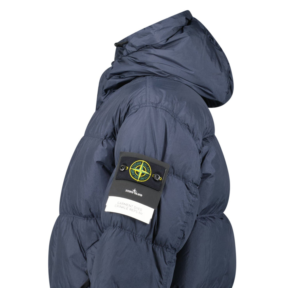 Stone Island Hooded Down Crinkle Reps NY Jacket in Navy