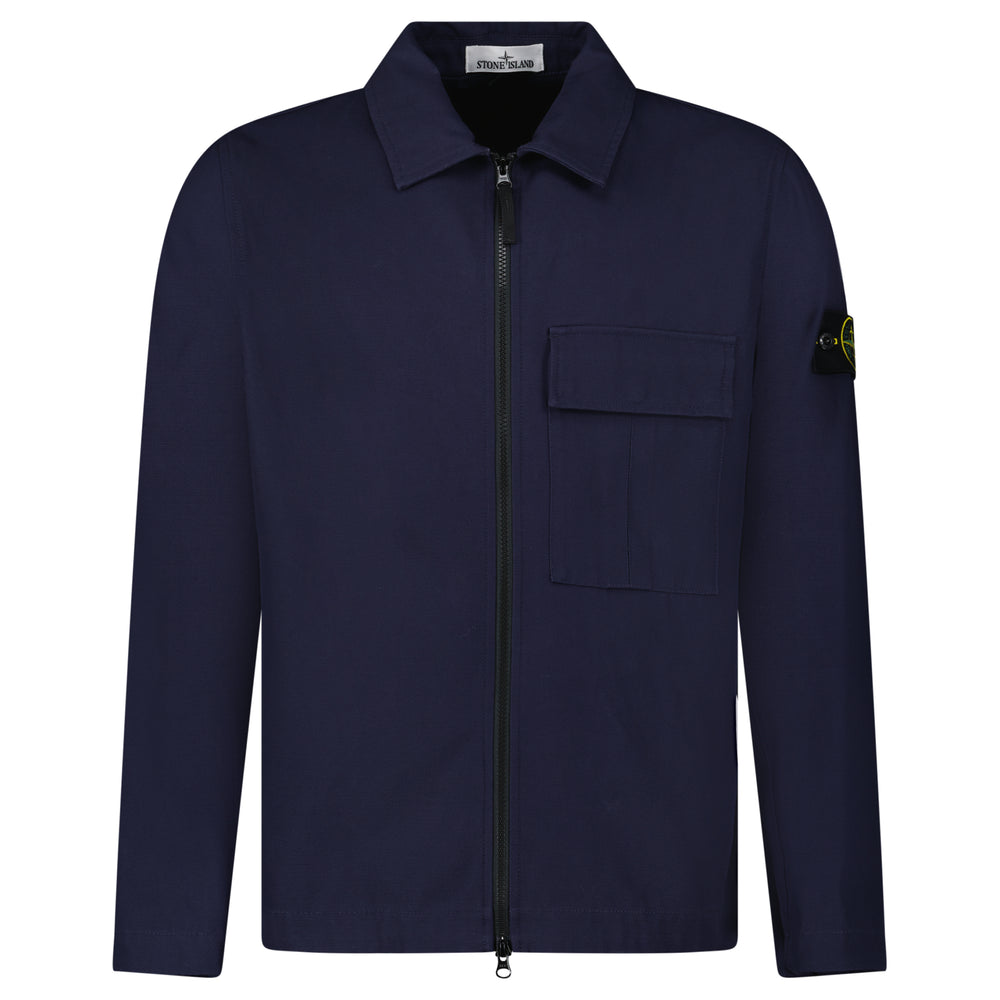 Stone Island Zip Panama Cotton Overshirt in Navy
