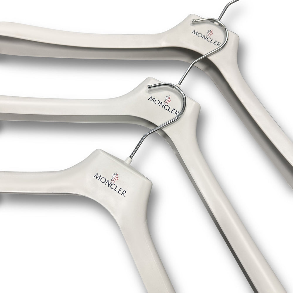 Enhance your wardrobe with Moncler's premium coat hangers, available in a set of 3 for just £5 each. Designed to maintain the shape and quality of your luxury garments, these hangers are a must-have for the discerning fashion enthusiast. Perfect for Moncler enthusiasts looking to bring a touch of elegance to their closet organization.