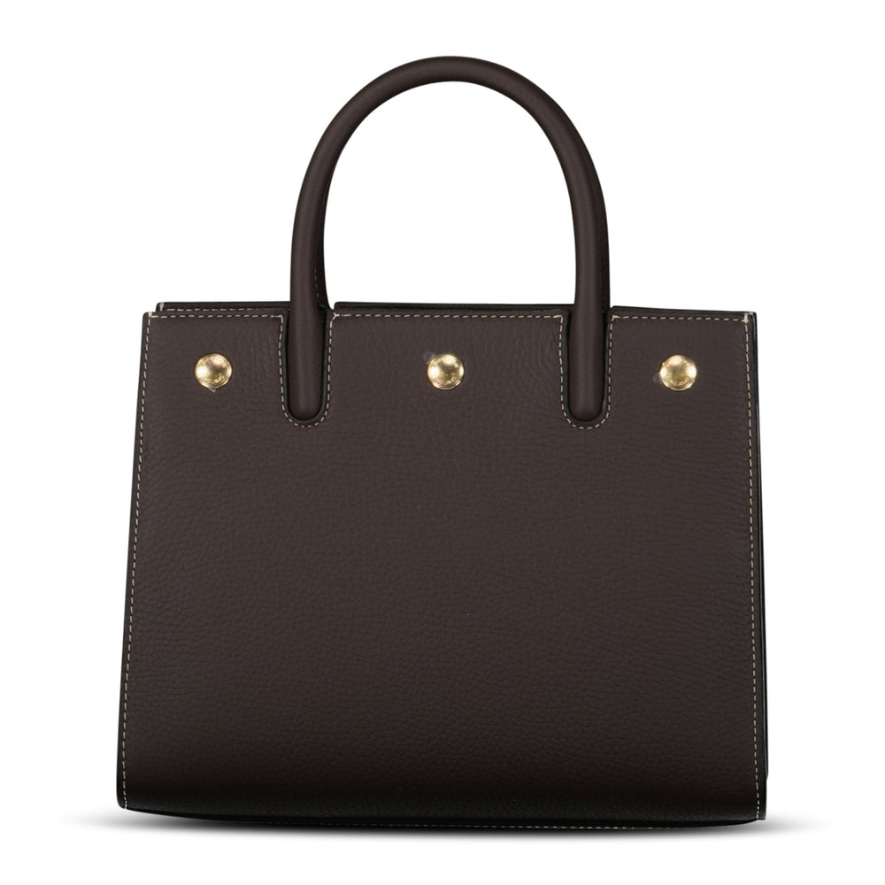 - Gold-tone hardware detailing