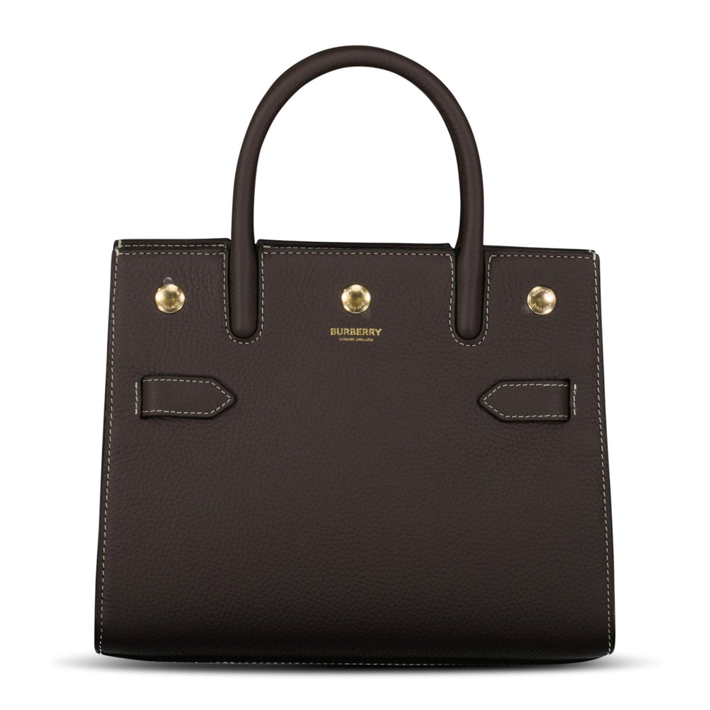 The Burberry Handle Tote in Dark Clay Brown is a refined everyday essential, combining classic structure with understated luxury. Crafted from premium grained leather, this compact tote features a clean, architectural silhouette accented with subtle gold-tone hardware and Burberry branding.