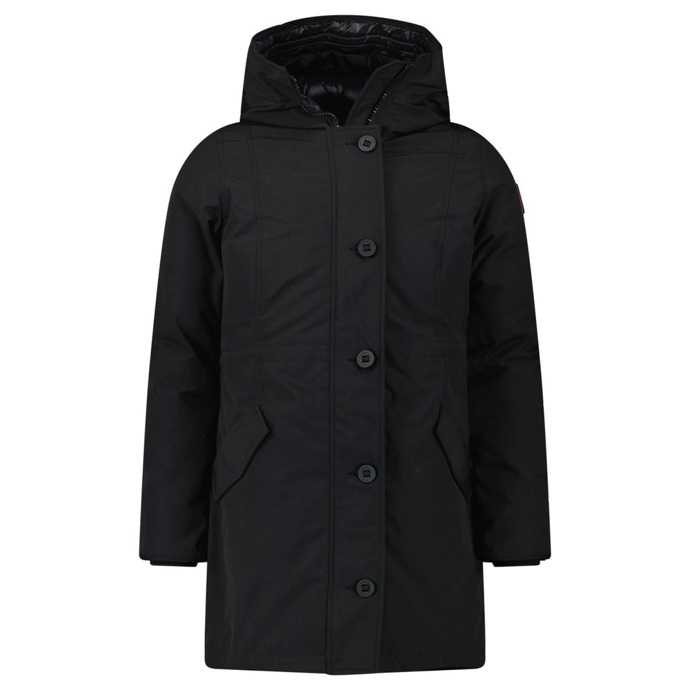 The Canada Goose Rossclair Parka in Black combines refined style with exceptional cold-weather performance. Expertly crafted from Arctic Tech fabric, this parka is built to endure extreme conditions while offering a sleek, feminine silhouette. Filled with premium down insulation, it features a hooded neck, interior drawstring waist, and recessed ribbed cuffs to lock in warmth. The dipped back hem adds extra coverage and protection from icy winds, while the two front slip pockets and button-over zip closure ensure practicality and timeless design.