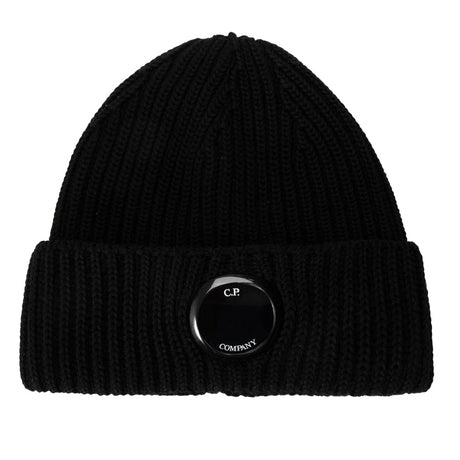 CP Company Goggle Beanie Hat in Extra Fine Merino Wool Black
