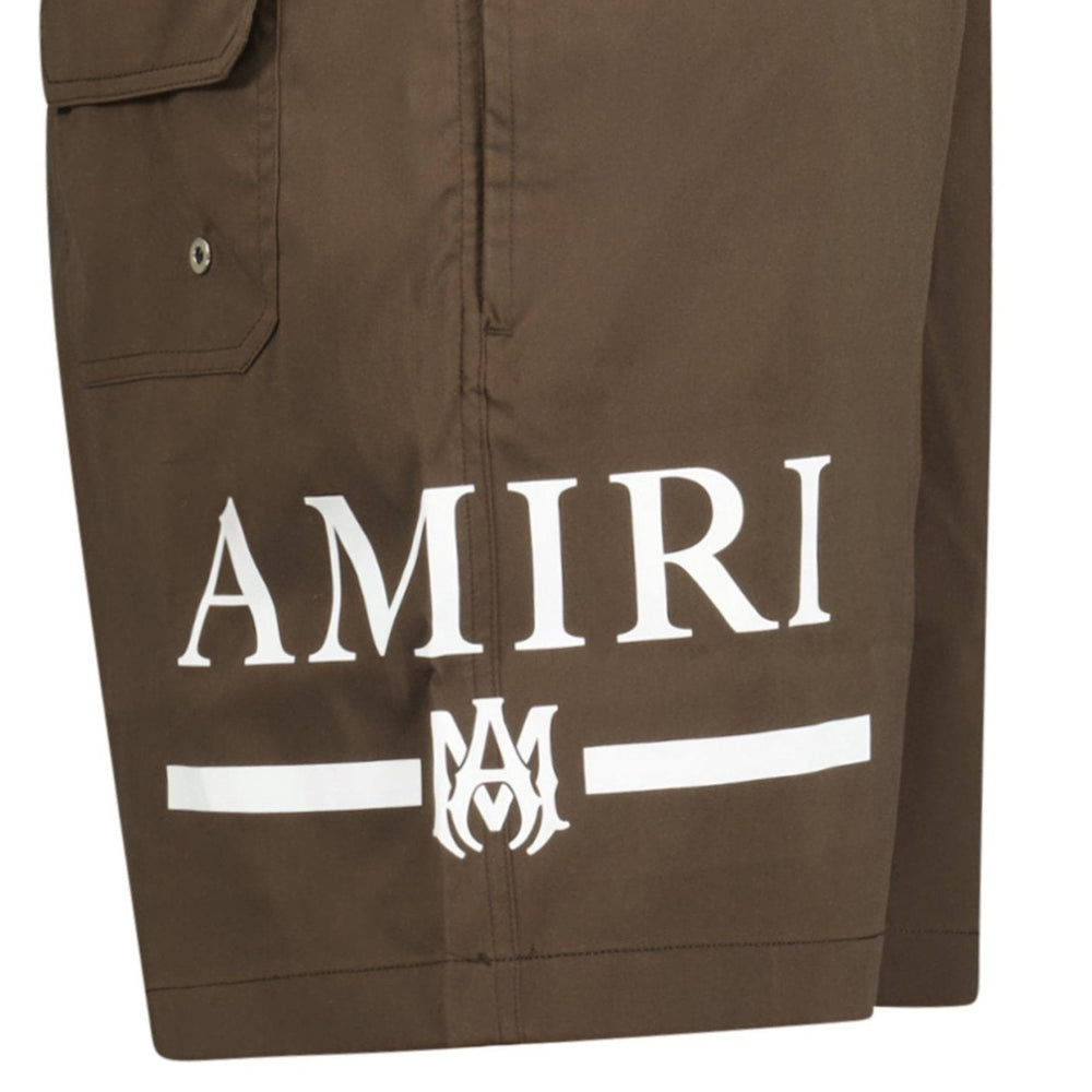 Amiri Ma Bar White Logo Drawstring Swim Shorts Brown