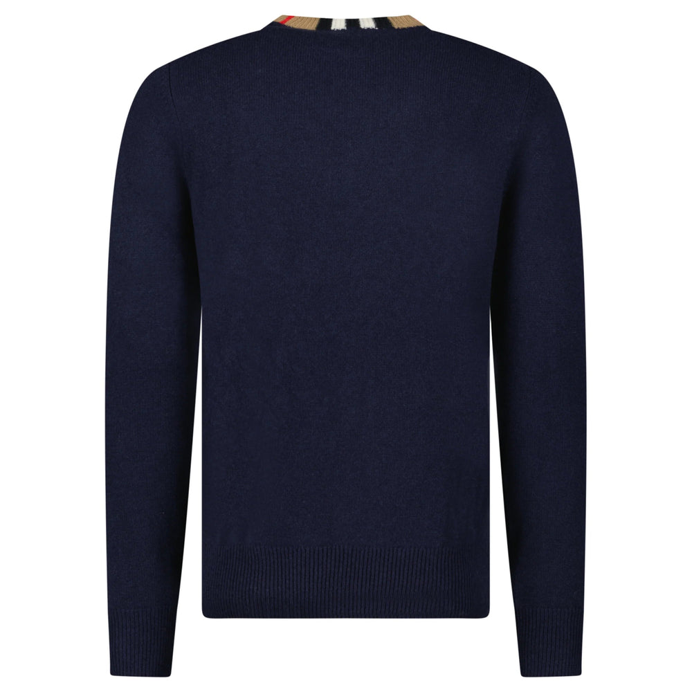 Burberry 'Noland' Knitted Wool/ Cashmere Jumper Check Neck Navy