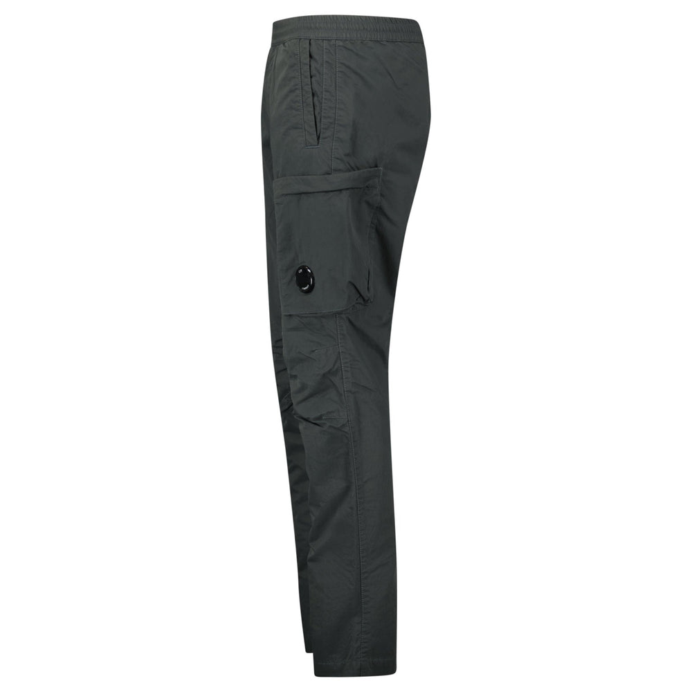 The CP Company Diagonal Flatt Nylon Regular Cargo Pants in Grey deliver a functional, utilitarian aesthetic with a refined finish. Constructed from Diagonal Flatt Nylon, a diagonally woven nylon fabric treated with a light resin coating on the reverse, these trousers offer a soft feel and subtle matte appearance. Garment dyed for rich, tonal depth, they feature an adjustable drawstring waistband, side pockets, and a cargo zip pocket with the signature C.P. Company Lens detail. Finished with a back snap pocket and an applied logo label, they balance comfort, versatility, and innovation.
