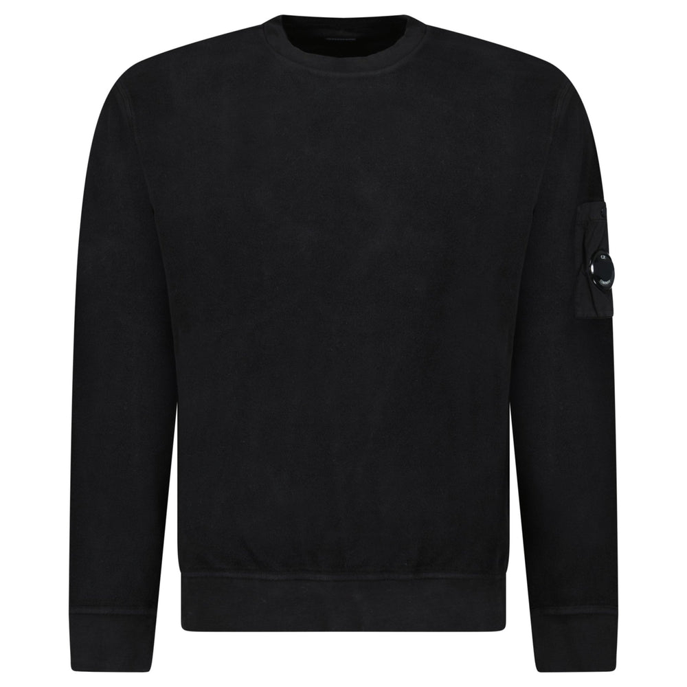 Elevate your casual wardrobe with the CP Company Emerized Diagonal Sweatshirt in Black Sand. Crafted from 100% premium cotton with an all-over textured finish, this sweatshirt offers a soft, brushed feel for superior comfort and a refined look. Designed with a ribbed crew neck, cuffs, and waistband for a snug fit, it blends classic styling with modern functionality. The signature CP Company single goggle detail on the press-stud fastening pouch pocket at the upper left sleeve adds a distinctive touch, making this piece a must-have for contemporary urban style.