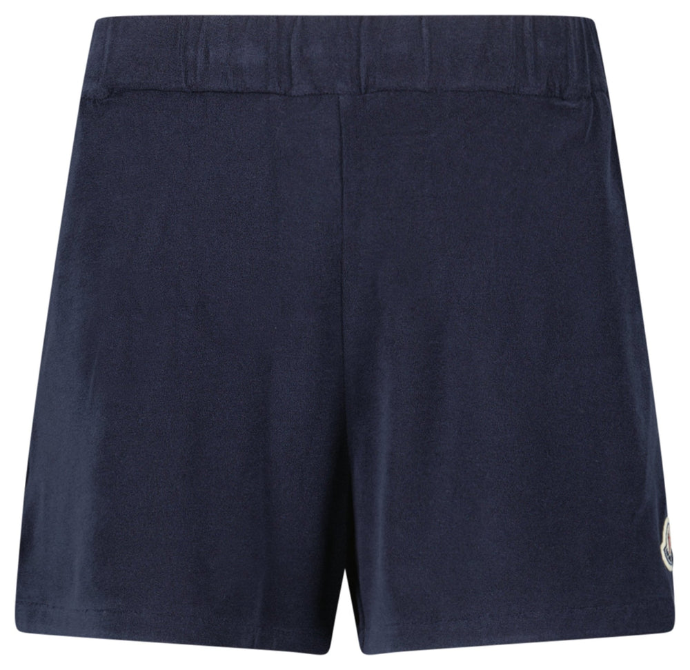 Moncler Logo-Patch Velour Shorts in Navy - L (14) is backordered and will ship as soon as it is back in stock.