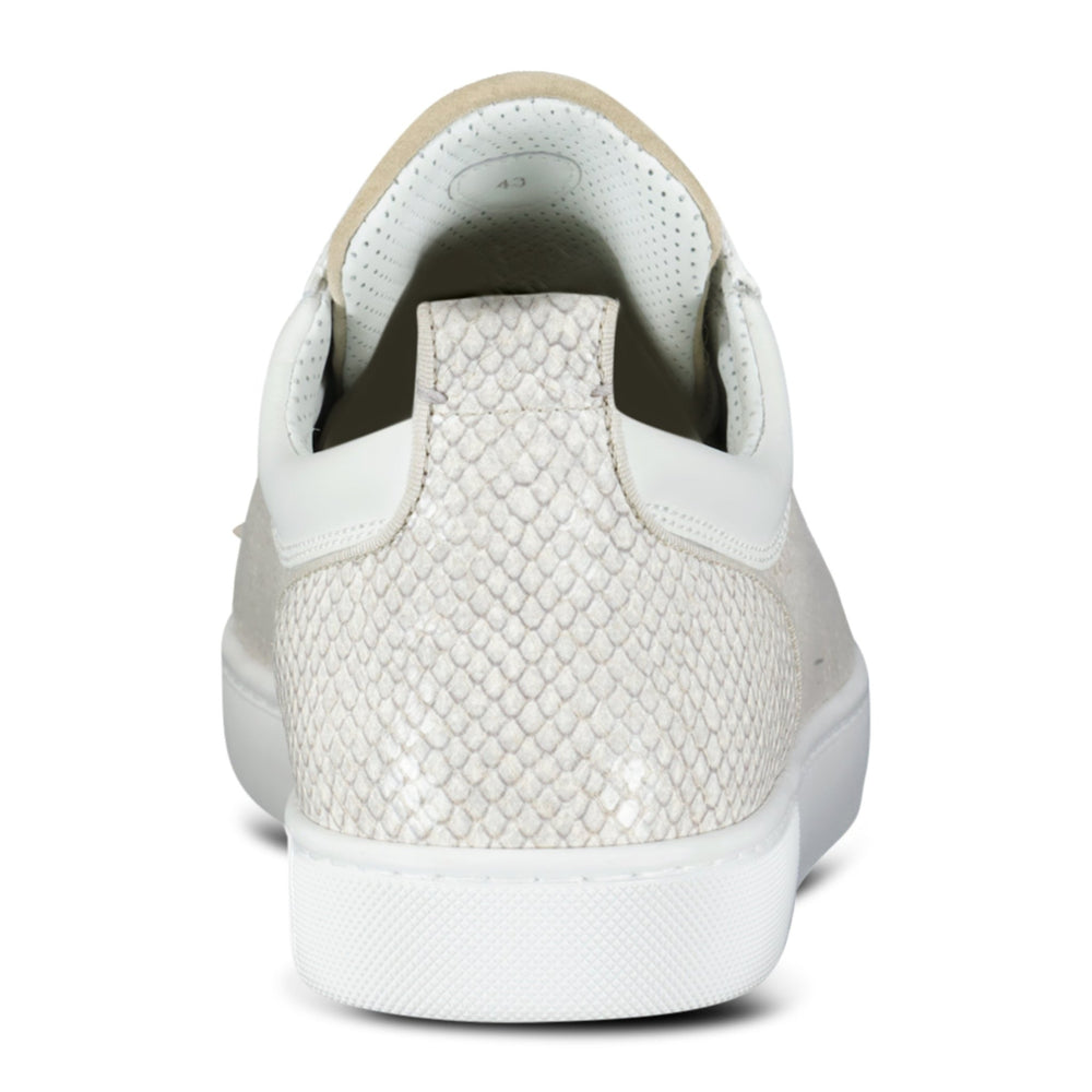 Elevate your sneaker collection with the Christian Louboutin Louis Junior Spikes Canvas Sneakers in Beige. Inspired by classic 1980s low-top basketball silhouettes, this statement pair seamlessly blends vintage appeal with modern craftsmanship. The signature red sole ensures unmistakable brand recognition, while intricate details like embossed snakeskin accents and signature spikes add a bold, rebellious edge. Perfect for city strolls or evening outings, these sneakers offer a refined take on casual luxury.