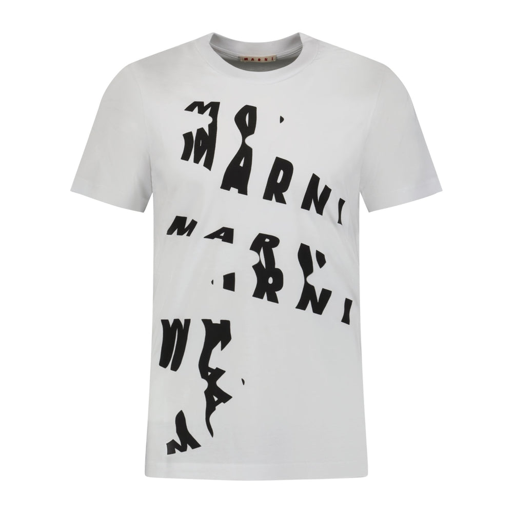 Refresh your everyday style with the Marni Logo T‑Shirt in White. Crafted from premium 100% cotton, this tee offers a soft, breathable feel and a clean silhouette that works effortlessly with a range of outfits. The bold black Marni logo across the chest gives it a signature designer touch, while the classic crew neck and short sleeves make it an easy staple for any season. Ideal for layering or wearing on its own, this T‑shirt brings understated luxury to casual dressing.