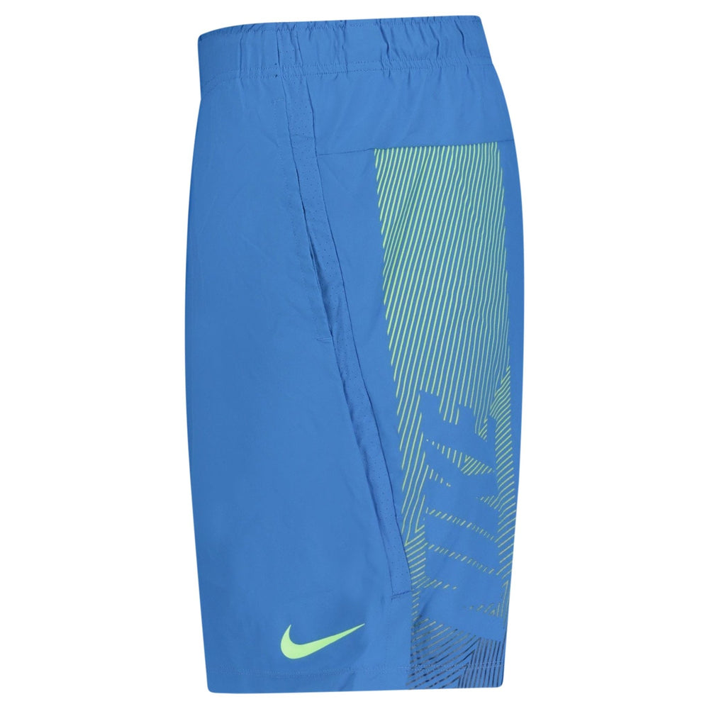 The Nike Dri-Fit Flex Shorts in Blue are designed for ultimate comfort and performance. These shorts feature a bold blue colour with a vibrant green Nike logo and detailing on the sides. The elastic waistband ensures a secure fit, while the lightweight polyester fabric offers breathability and flexibility for various activities.