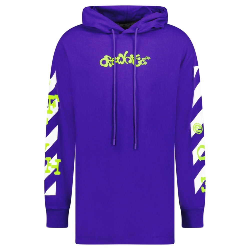 Elevate your casual wardrobe with the Off-White Opposite Arrows T-Shirt Hoodie in Purple. This oversized hoodie is the ultimate statement piece, blending bold design with everyday comfort. Perfect for those who want to make a striking impression, it features Off-White’s iconic streetwear aesthetics.