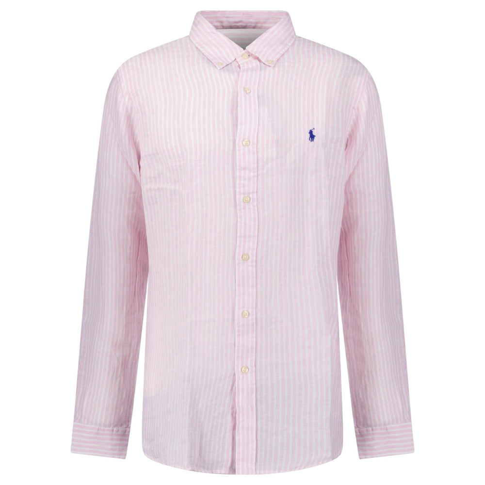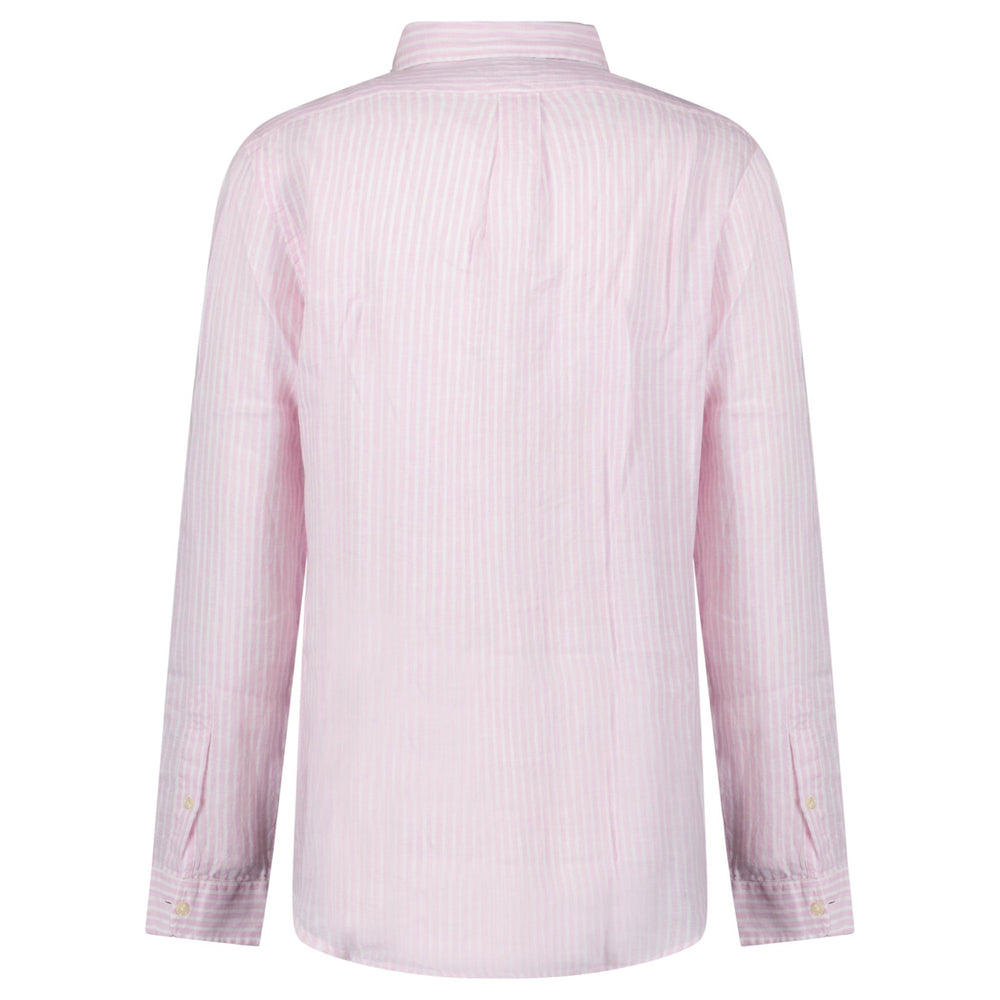 Polo Ralph Lauren Custom Fit Stripe Linen Shirt in Pink/White