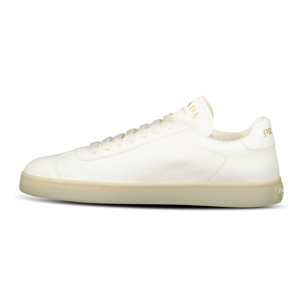 Prada Leather Trainers with Gold Metal Appliqué in Avorio