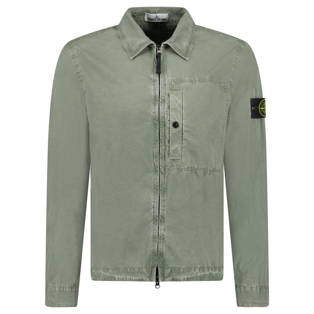 Shop the Stone Island Brushed 'Old Effect' Cotton Overshirt in Musk Green – a versatile layer made from soft, garment-dyed cotton with a vintage-inspired finish. Featuring a classic zip front and the signature compass patch, it's perfect for smart-casual styling. Available now at Chance Fashion.