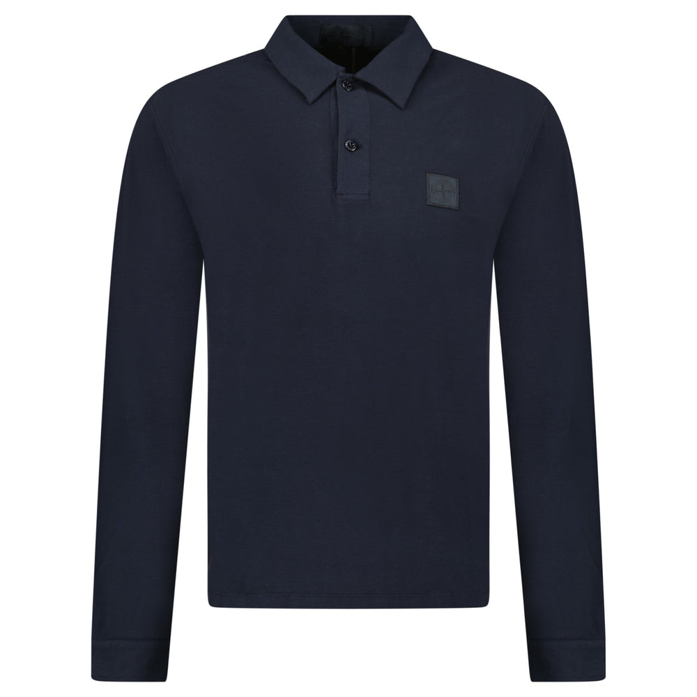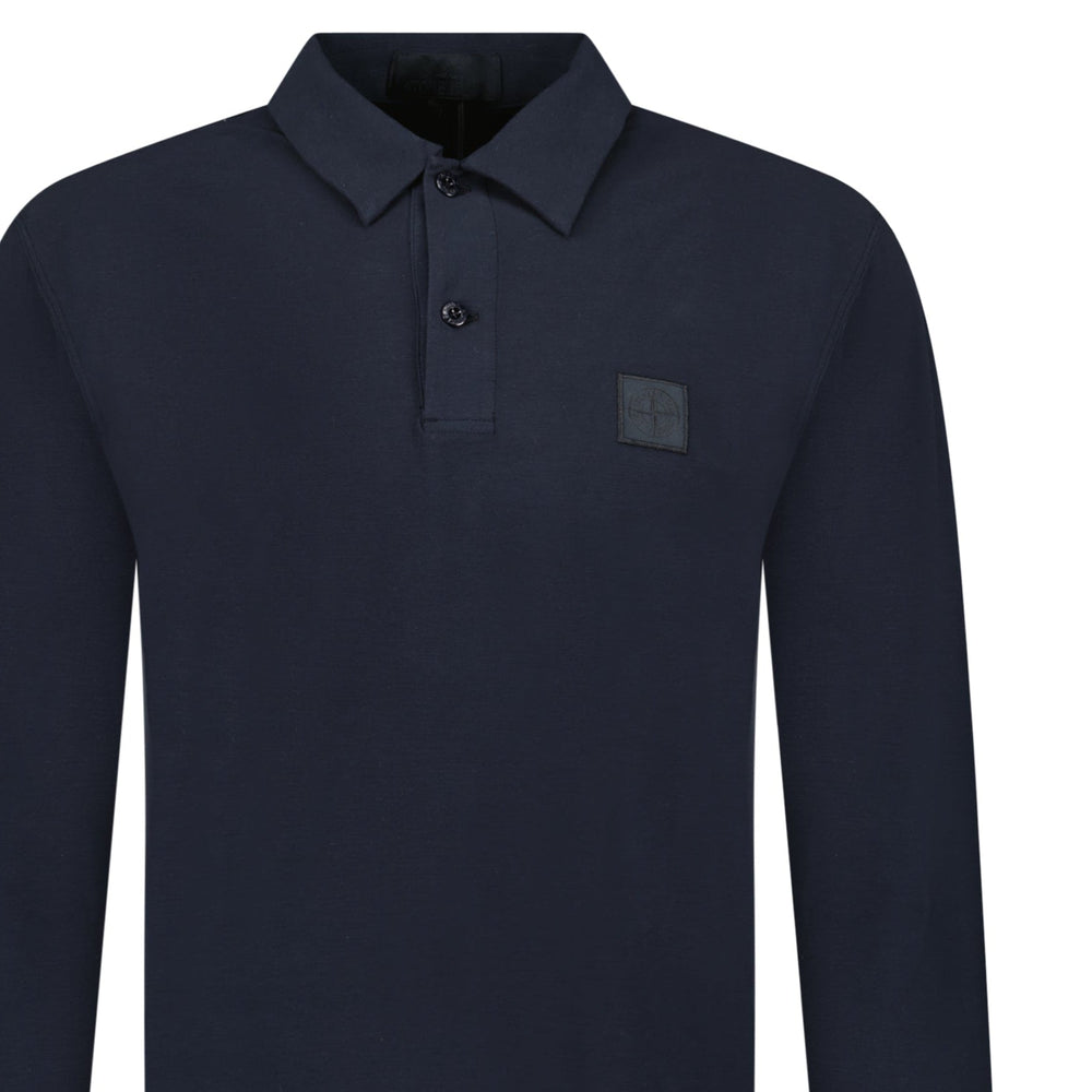 Stone Island Ghost Badge Long Sleeve Polo Shirt in Navy