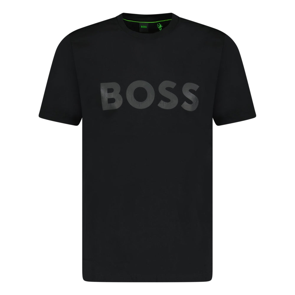 Elevate your everyday style with the BOSS Cotton-Jersey T-Shirt featuring a Decorative Reflective Hologram Logo in sleek black. This T-shirt by BOSS Menswear is cut to a regular fit from soft jersey fabric, providing both comfort and a clean aesthetic. The highlight of this tee is the decorative reflective hologram logo on the chest, adding a unique and stylish touch.