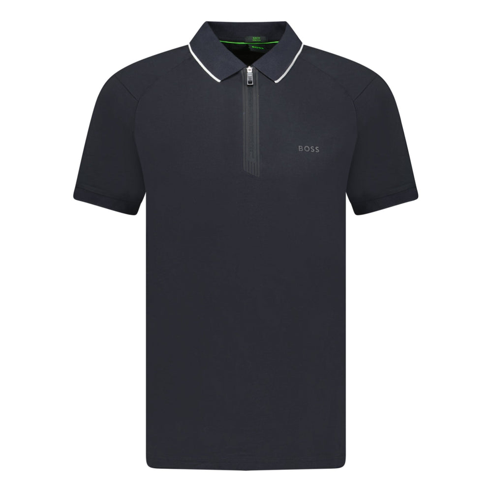 Hugo Boss Stretch Slim-Fit Polo Shirt Zip Placket Black