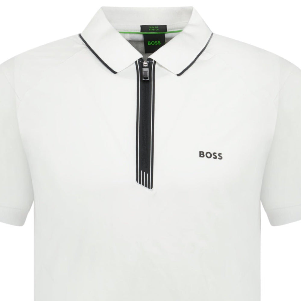 Hugo Boss Stretch Slim-Fit Polo Shirt Zip Placket White