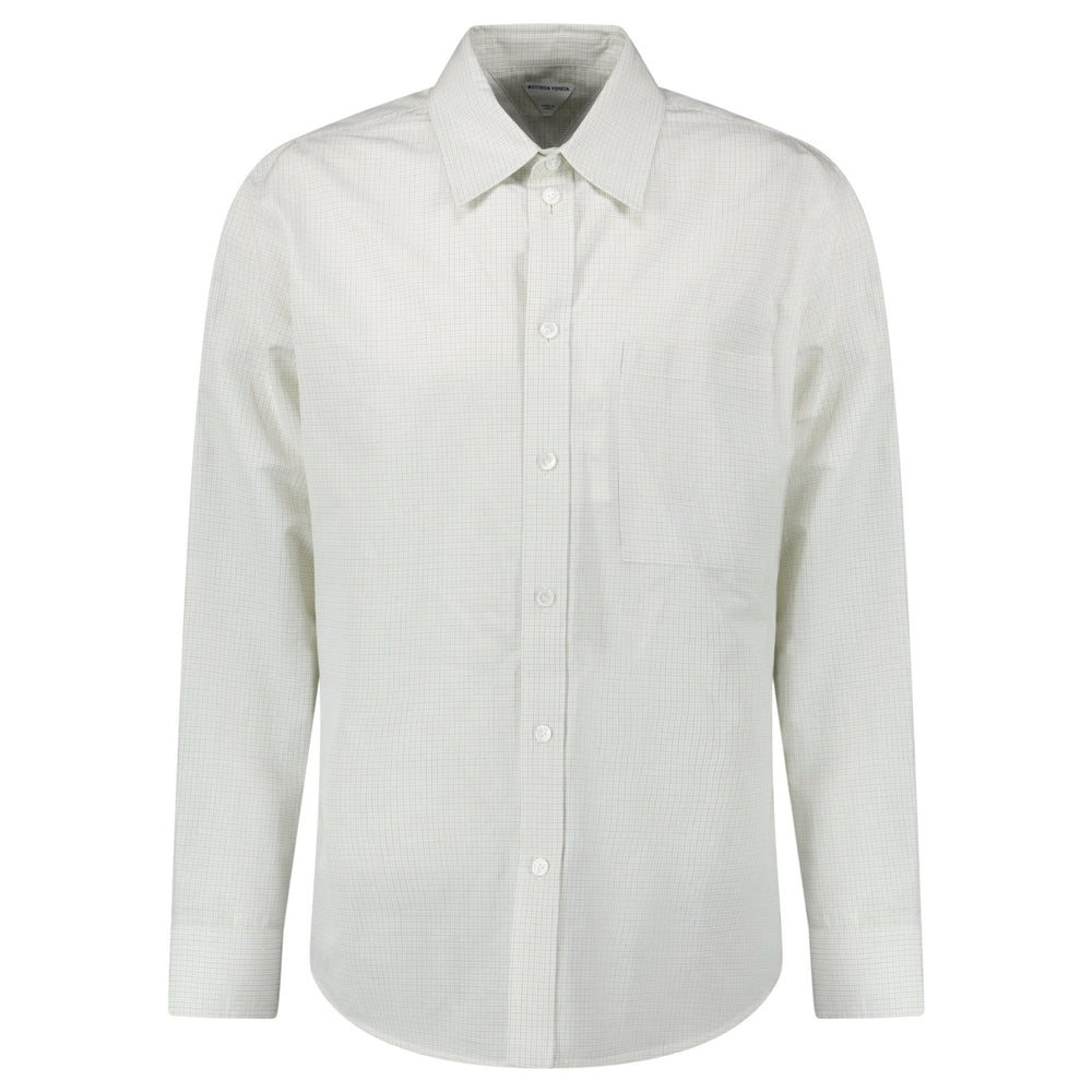 Elevate your wardrobe with the Bottega Veneta Cotton Linen Check Shirt with BV Embroidery in Brown/Bay Leaf. Crafted from a premium cotton and linen blend, this refined long-sleeved shirt offers lightweight comfort and a tailored aesthetic, perfect for both formal and casual occasions. Showcasing a distinctive check pattern and the signature BV embroidery, it delivers timeless sophistication with a contemporary edge.