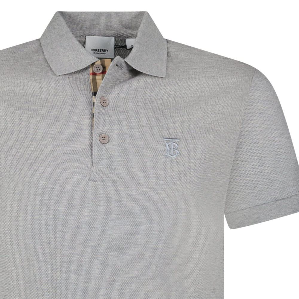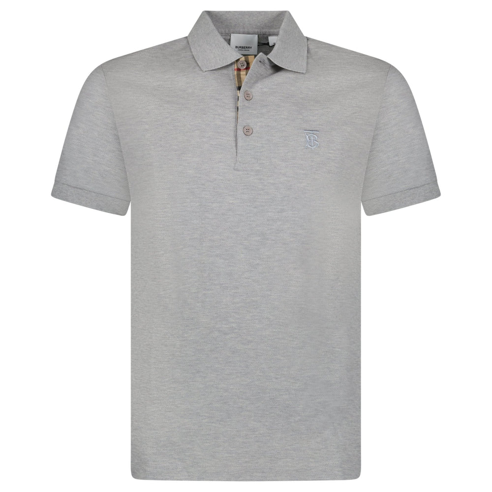 Burberry 'Eddie' TB Check Placket Polo-Shirt Grey