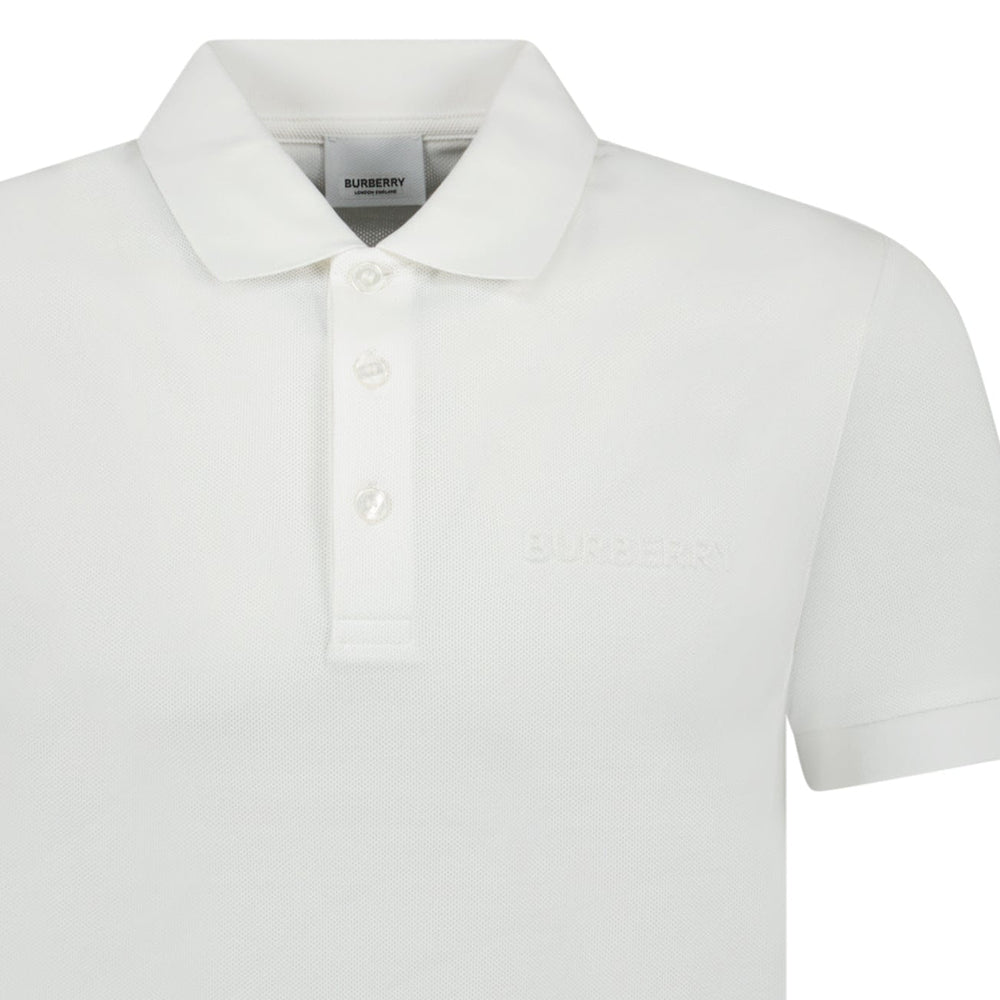 Elevate your wardrobe with the Burberry 'Hartford' Embossed Logo Polo in White. This timeless polo shirt combines classic style with a modern twist, featuring a sleek embossed Burberry logo across the chest. Crafted from premium cotton pique, it offers a soft, breathable feel, making it perfect for any occasion. The structured collar and button placket add a refined touch, while the versatile White colour ensures easy styling.