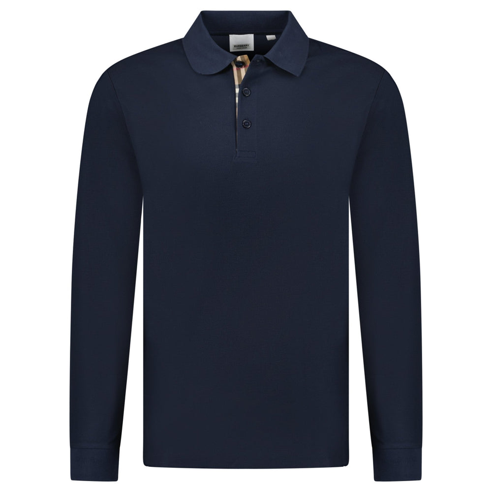 Burberry 'Hartford' Long Sleeved Check Placket Polo-Shirt Navy