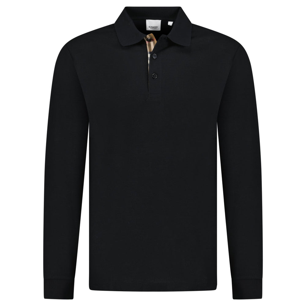 Burberry 'Hartford' Long Sleeved Check Placket Polo-Shirt Black
