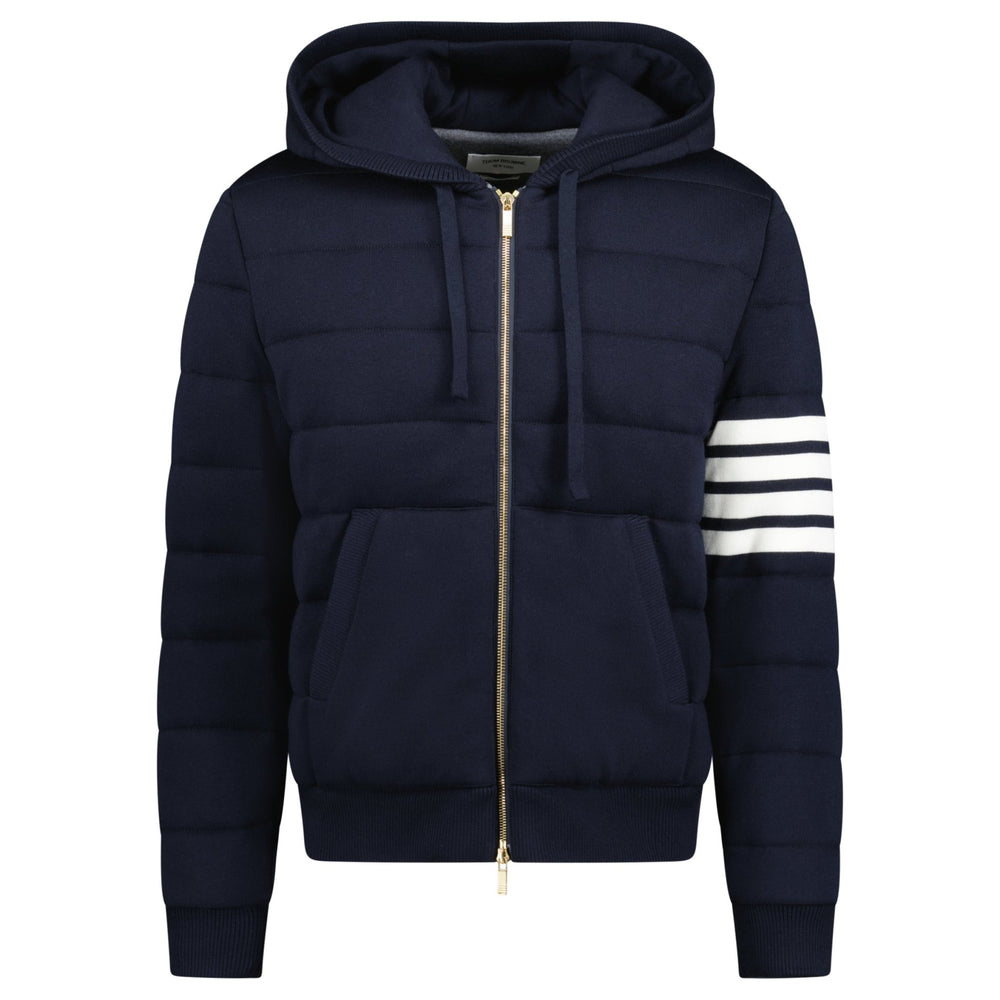 Thom Browne Merino Wool Jersey Stitch Padded 4-Bar Zip-Up Hoodie in Navy
