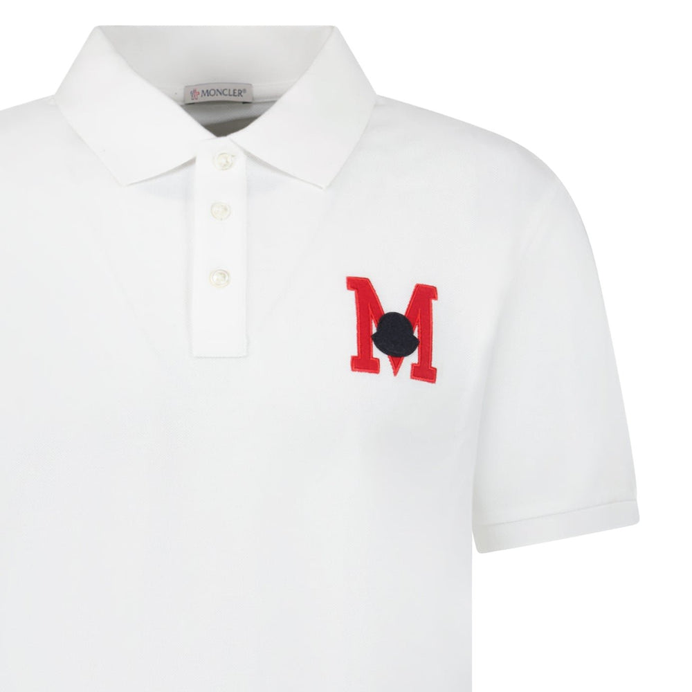 Moncler Embroidered Monogram Polo Shirt in White - L is backordered and will ship as soon as it is back in stock.
