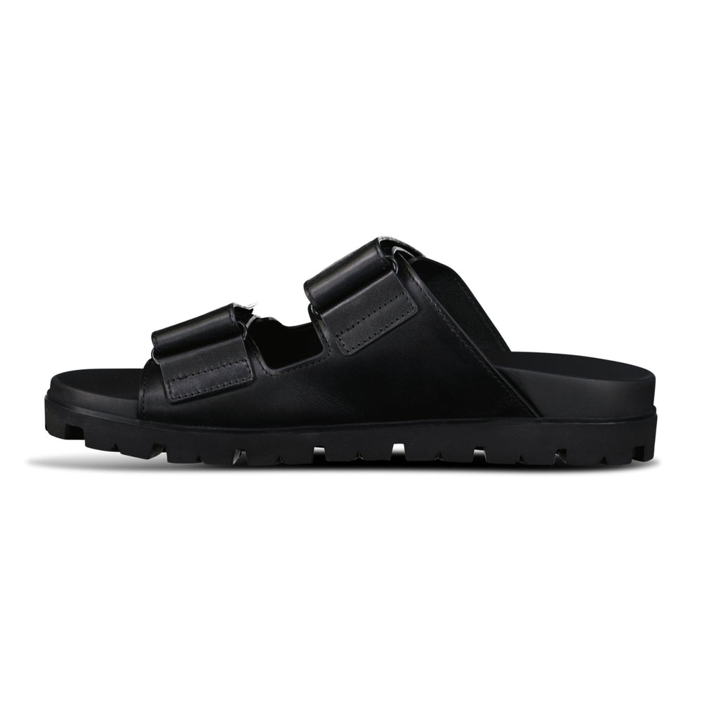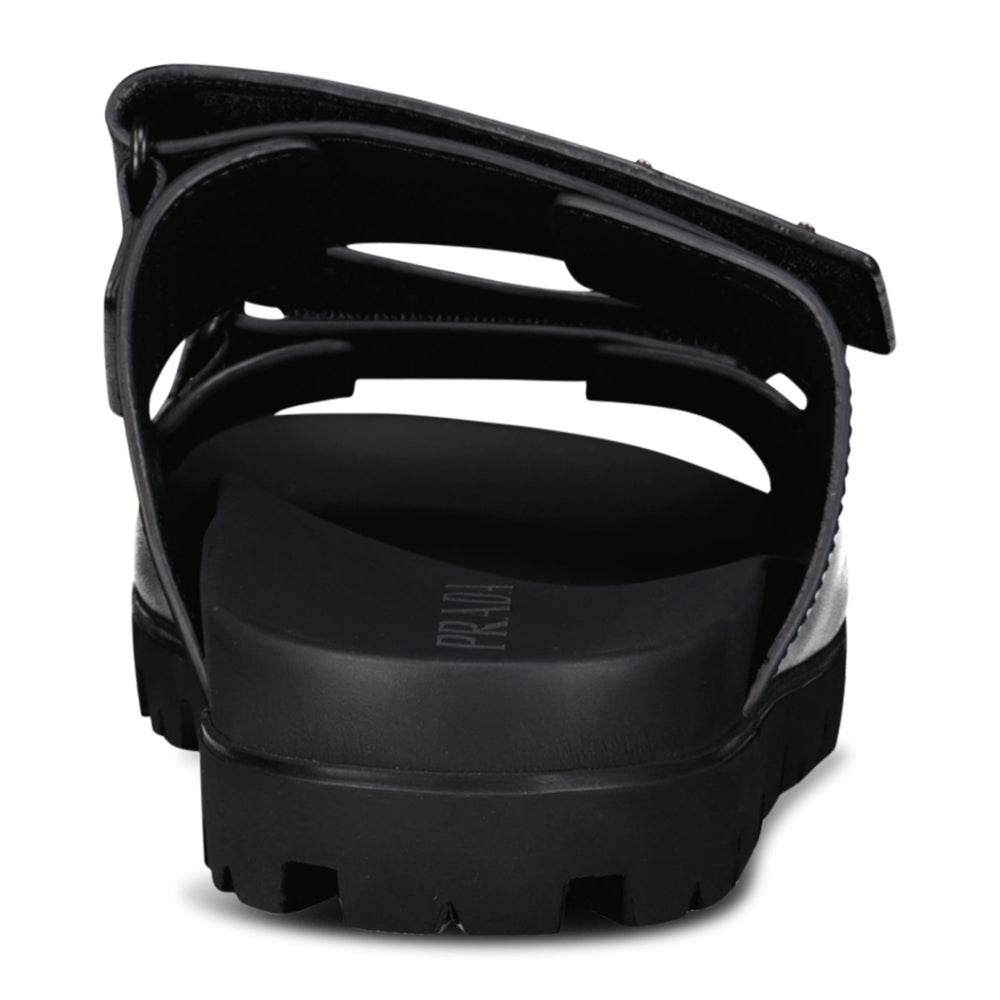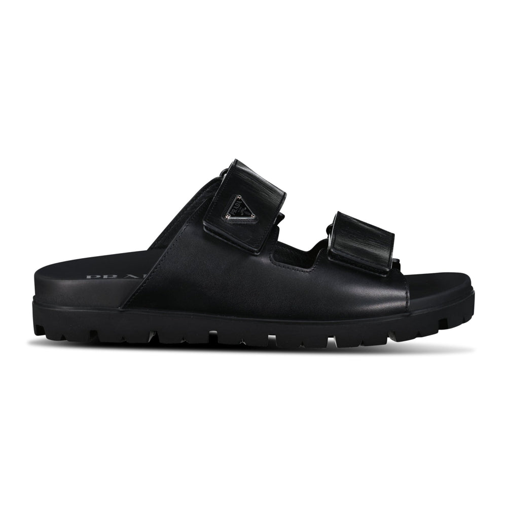 Prada Triangle Logo Leather Strap Sandals Black - UK10 is backordered and will ship as soon as it is back in stock.
