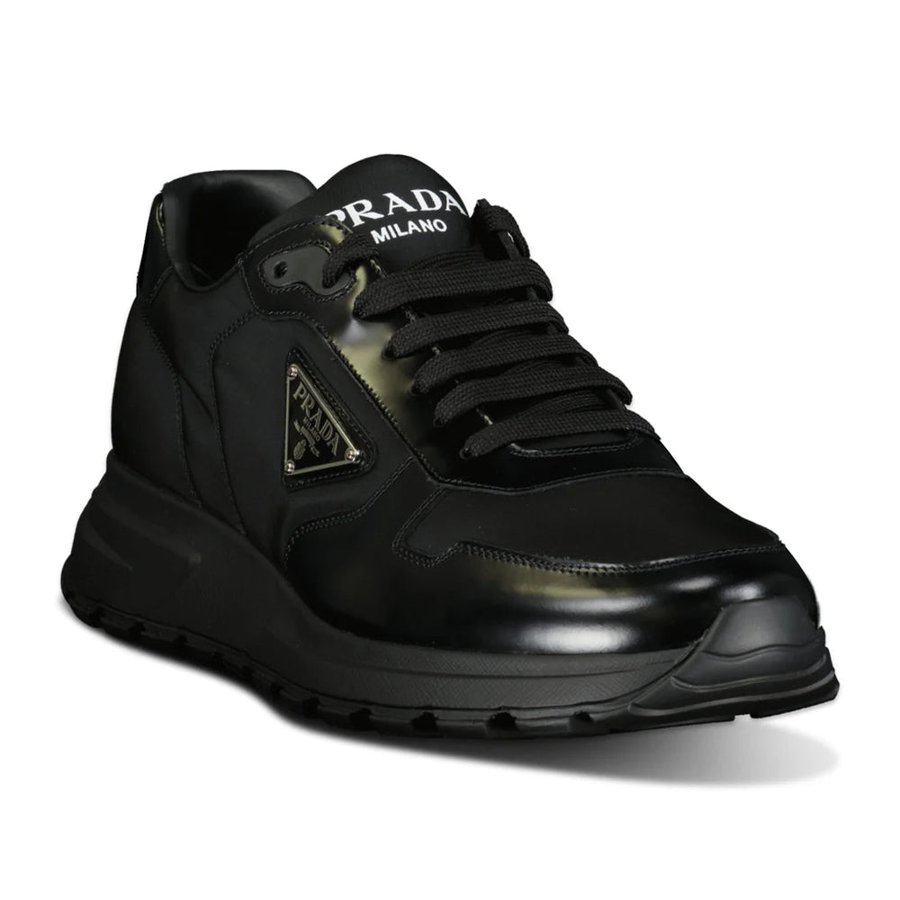 Prada Prax 01 Triangle Logo Leather Trainers Black