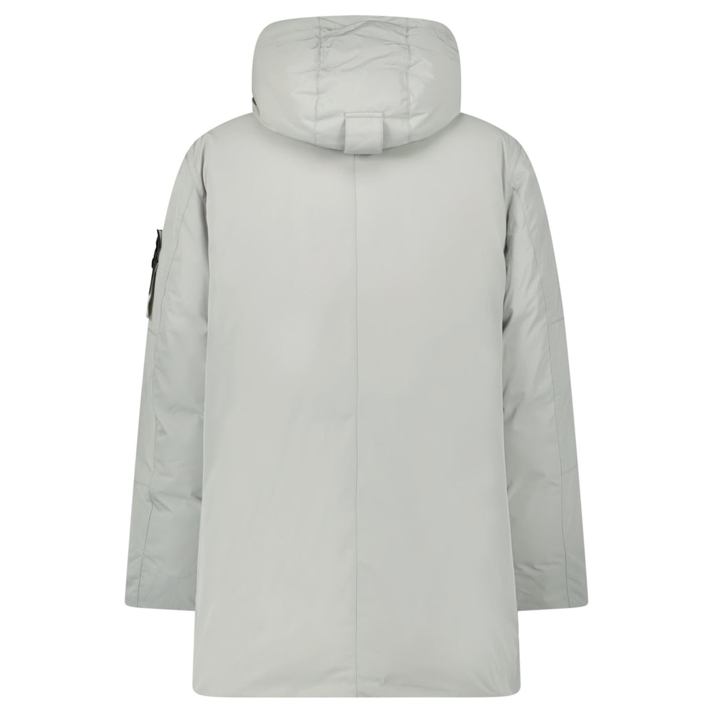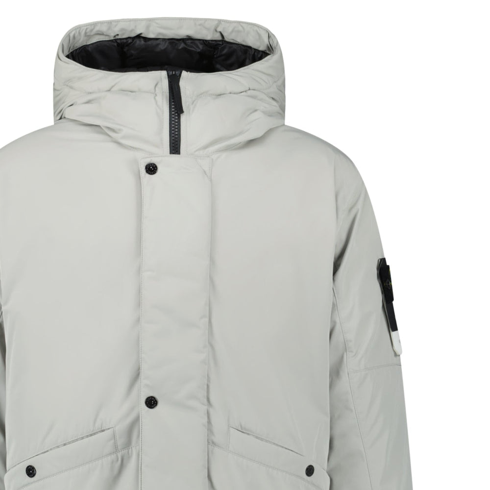 Stone Island Micro Twill Hooded Long Parka in Pearl Grey