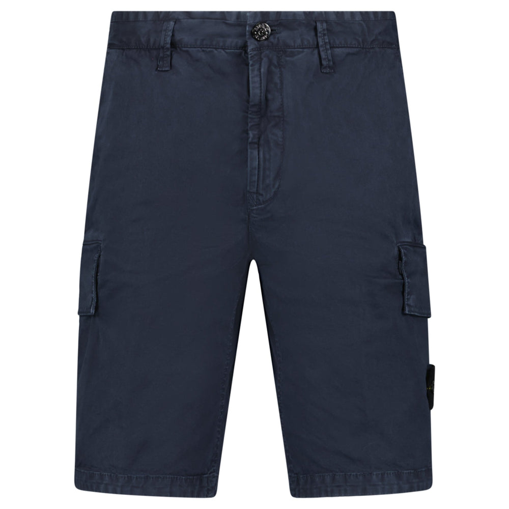 Stone Island Organic Cotton Stretch Broken Twill 'Old' Effect Cargo Shorts in Navy - W30 is backordered and will ship as soon as it is back in stock.