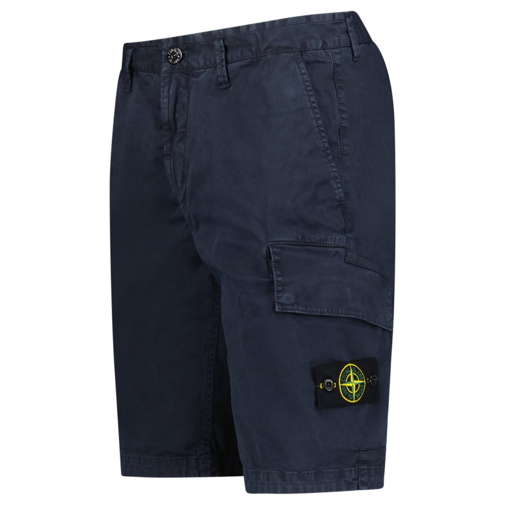 Stone Island Organic Cotton Stretch Broken Twill 'Old' Effect Cargo Shorts in Navy